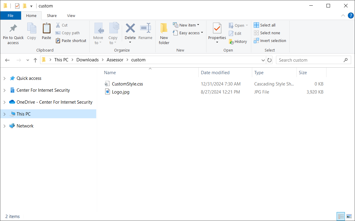1. Save the custom graphics or CSS files to Assessor/custom.